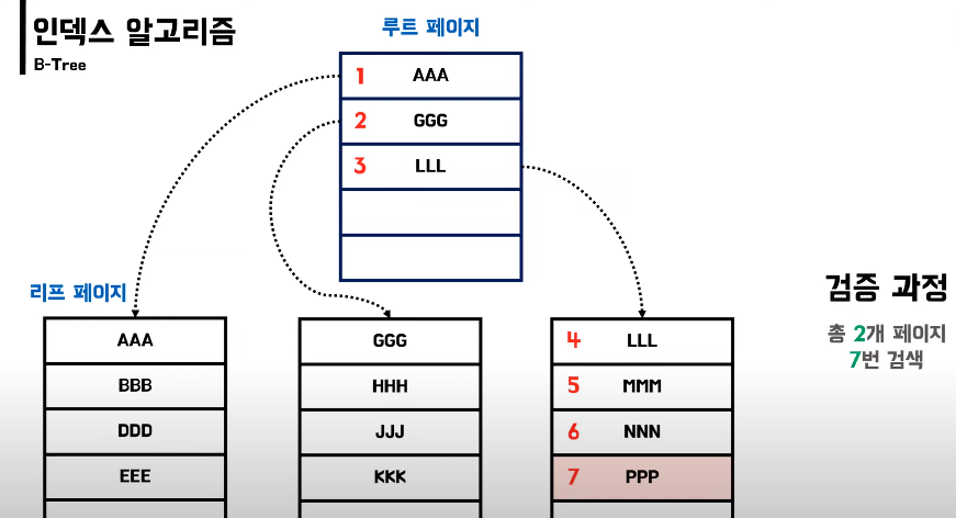 B-Tree를 적용하면 Pull Table Scan방법에 비해 효율적으로 검색할 수 있다.
