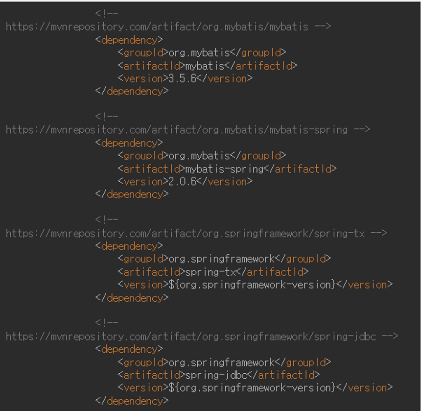 1. Mybatis 라이브러리 추가 (pom.xml) - version확인!