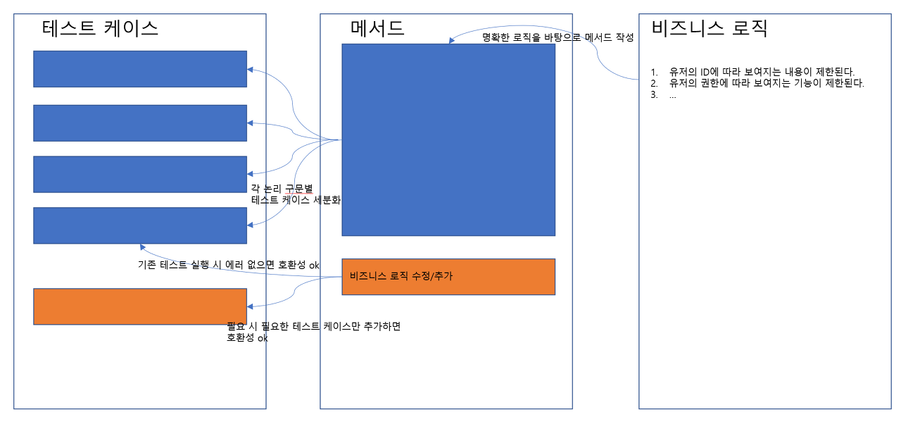 - 이러한 테스트를 하나의 기능별로 구분해서 진행해본다면, 개발자가 명확한 논리를 갖게 되고 테스트를 하는 것이 쉬워진다.