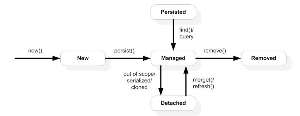 - EntityManager를 통해 persist메서드를 호출하거나 DB에서 조회한 Entity를 변경하면 영속 상태가 된다.