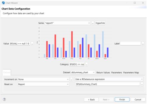 - Dataset을 선택한 후 Value와 Category에 각각 Dataset Field의 VAL과 KEY값을 세팅