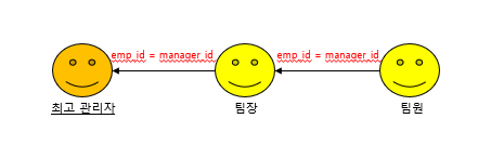 첫번째 SELECT에서 최상위 관리자(manager_id가 없는 사람)를 선택하고, 그 다음 SELECT 부터는 자기 자신(OrgHierarchy)을 참조(상사의 id = 부하의 상사 id) 하여 부하직원을 찾아내는 식으로 계속 진행된다.