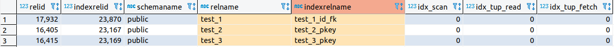 SELECT * FROM pg_stat_user_indexes WHERE relname = 'user_role';Ex >