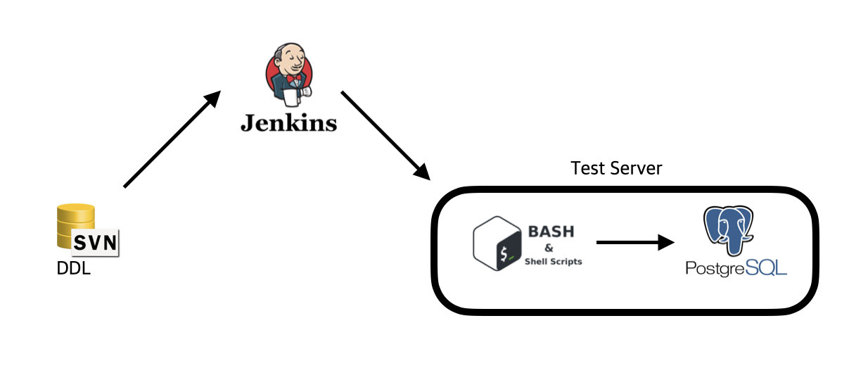 개발 서버와 Junit용 테스트 서버의 DB(postgres)를 연동해야 한다. 개발 서버에서 DB의 수정 사항은 쿼리(ddl)로 작성하여 별도의 svn서버에 올려놓고 있으며, jenkins를 붙여놔 다른 환경에서 jenkins를 통해 빌드하여 패치할 수 있다.
