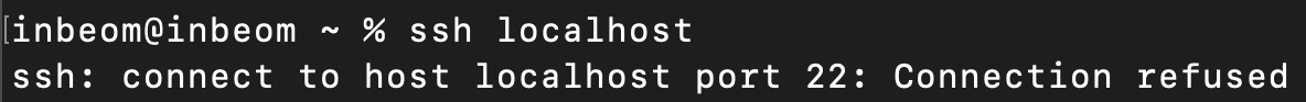 따로 설정을 하지 않은 상태에서 'ssh localhost' 명령을 치면 이렇게 22번 포트의 접속이 거부된 것을 확인할 수 있다.
