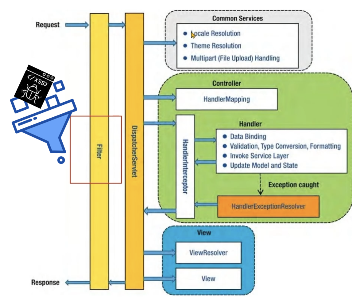 - HttpservletRequest에 대한 XSS 필터링 수행