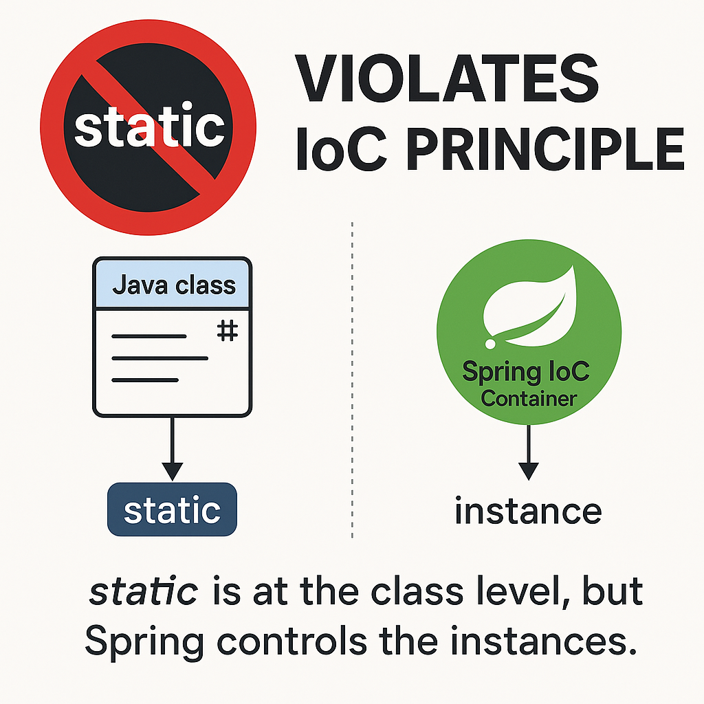 즉, Spring은 인스턴스 단위의 제어를 기본으로 하고, static은 클래스 단위의 제어이므로 철학과 구조가 충돌한다.