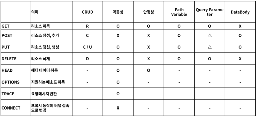 - HTTP의 요청을 특정하는 Method는 8가지가 있다.